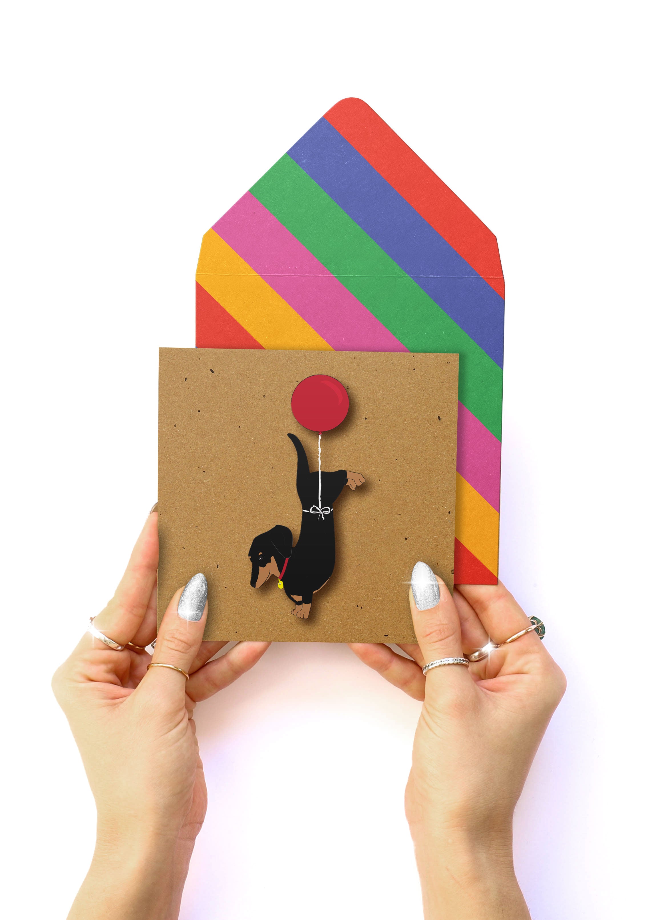 Birthday Balloon Dachshund, Handmade Greeting Card