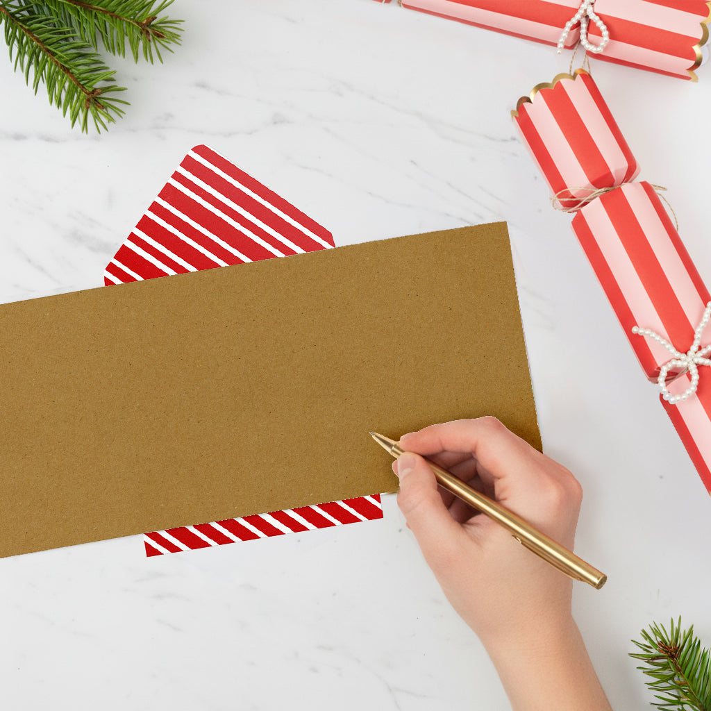 Printed on eco-friendly recycled board and paired with a bold red and white striped envelope, it’s a card that feels just as special to give as it does to receive.