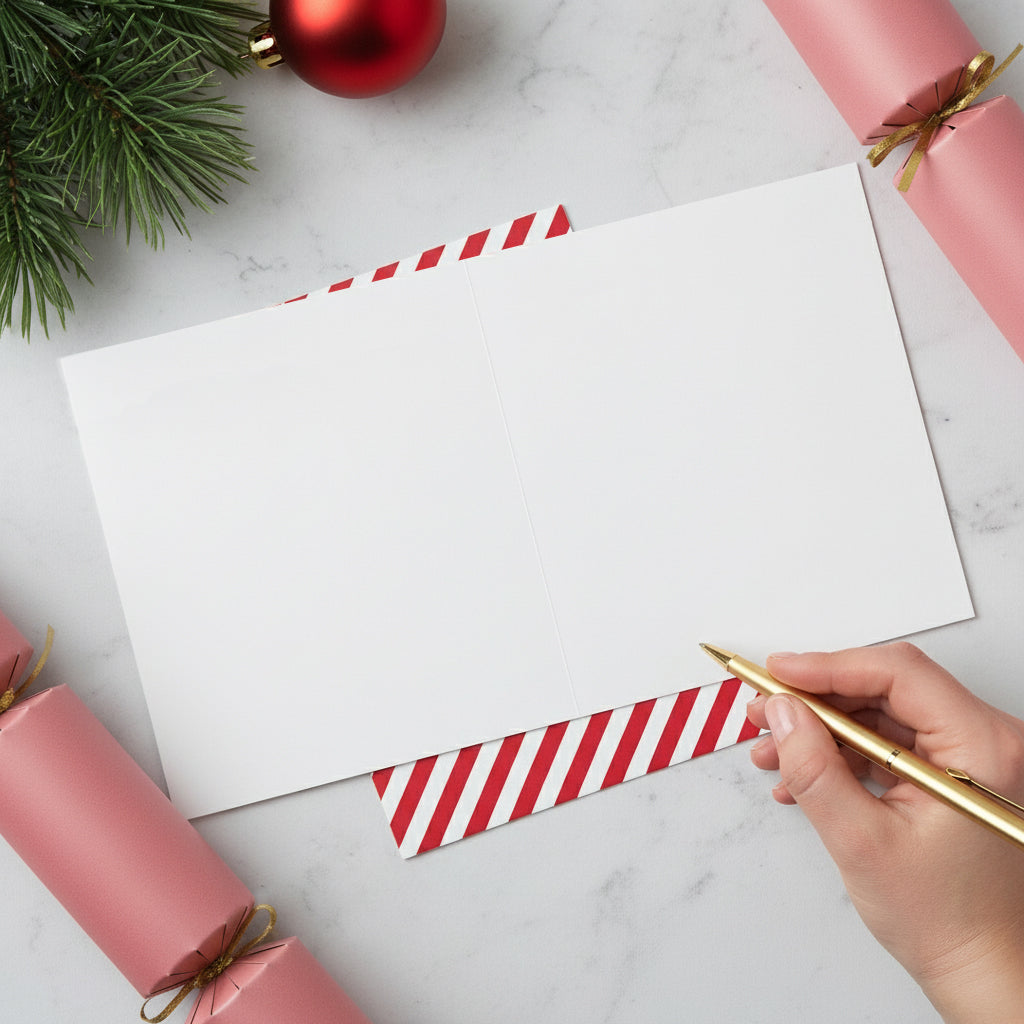 Printed on eco-friendly recycled kraft board and paired with a red and white striped envelope, it’s the perfect Christmas card for kids, families, and Peppa fans of all ages.