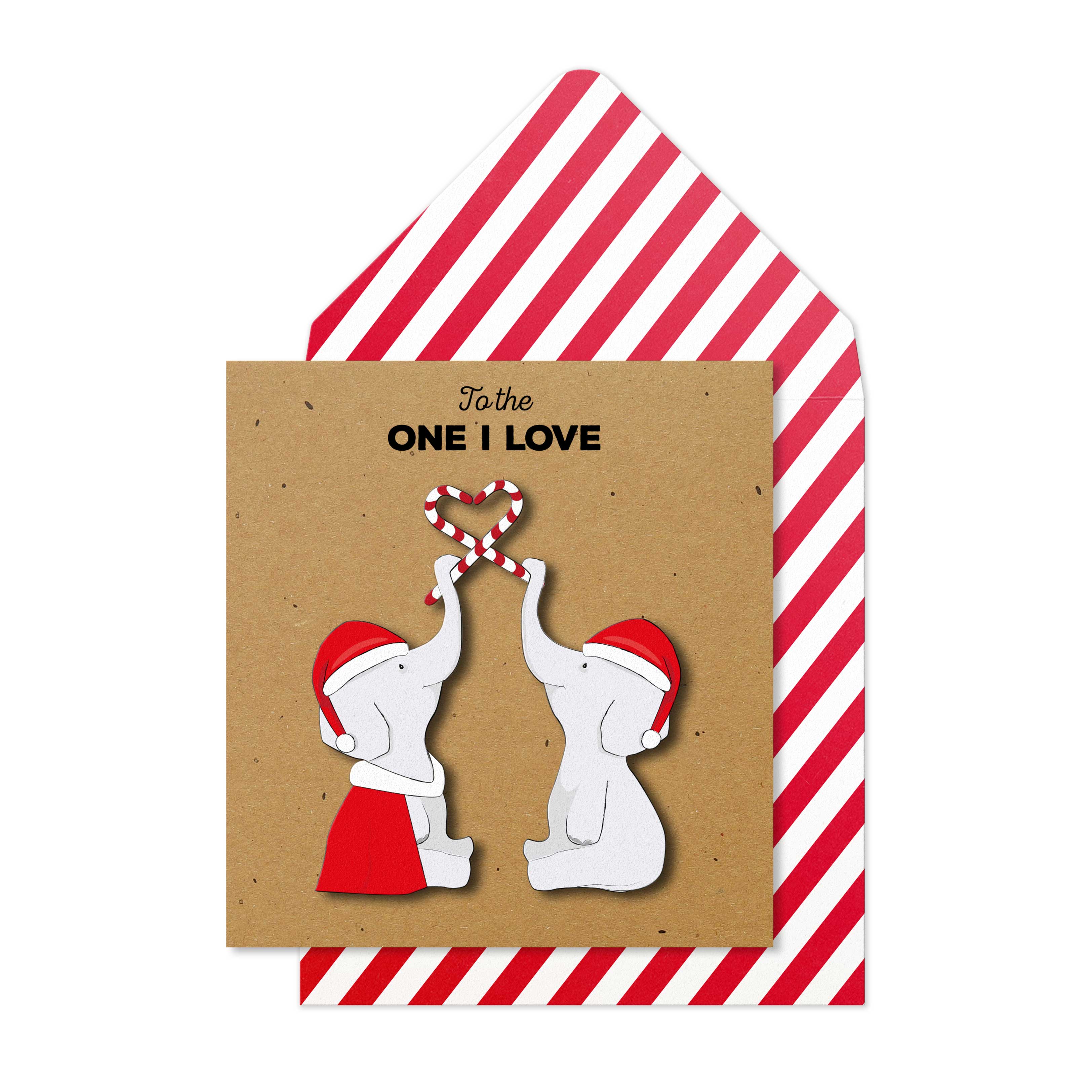To the One I Love Candy Cane Elephants, Handmade Christmas Greeting Card
