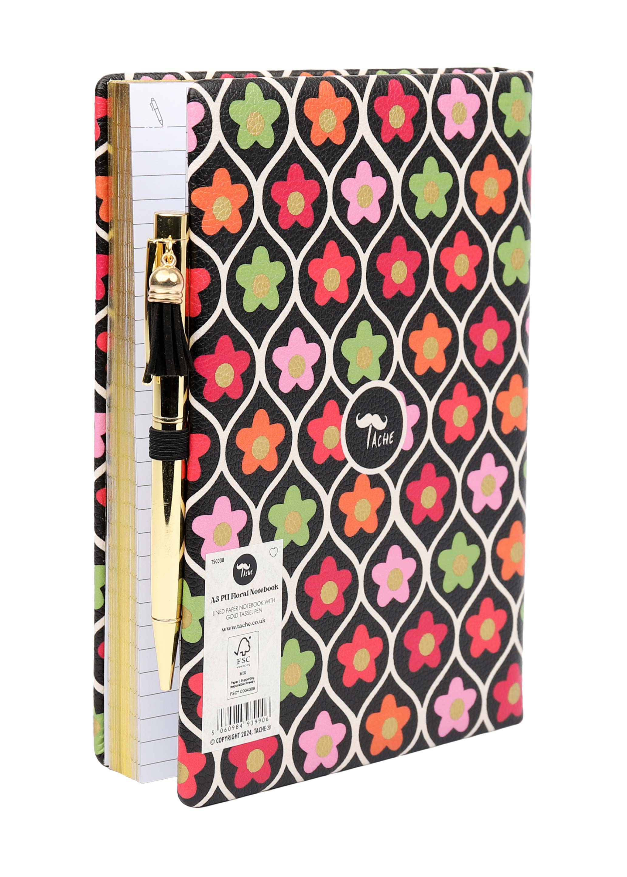 A5 Retro Geometric Floral Padded Notebook and Pen