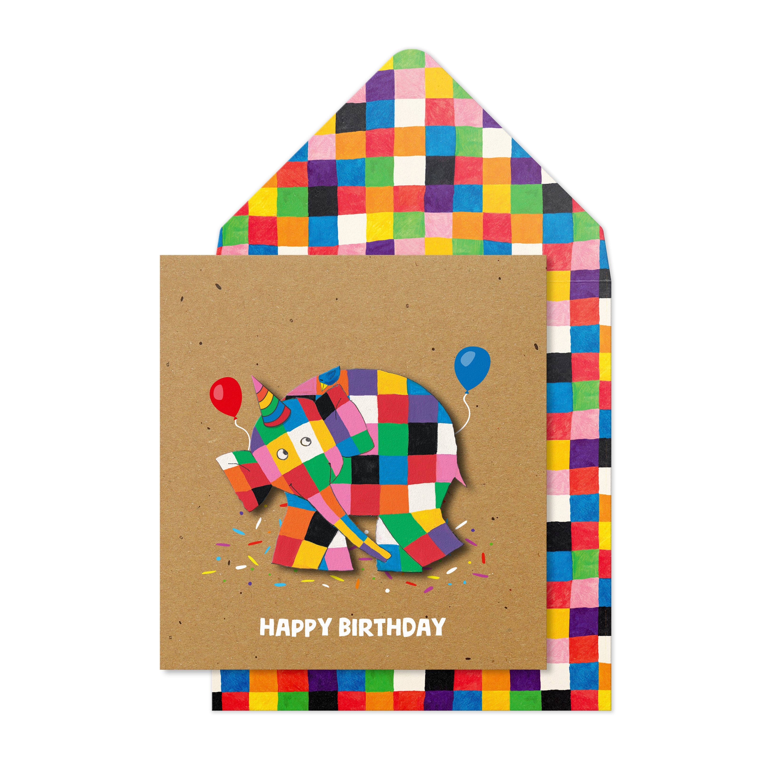 Bring a burst of colour to someone’s special day with our Elmer the Elephant Happy Birthday card! Featuring Elmer in his classic patchwork design, surrounded by confetti and balloons, this handmade card is full of fun.