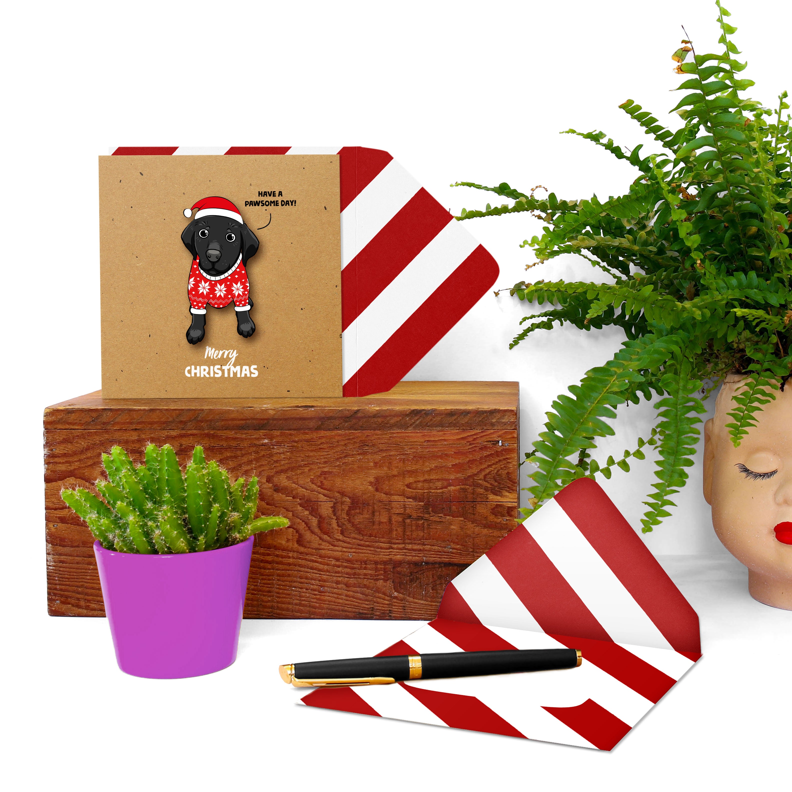 Printed on eco-friendly recycled kraft board and paired with a bold red and white striped envelope, it’s a heartwarming way to wish someone a pawsome Christmas.